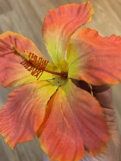 Was it the time I was on a beach towel by myself at Spring Lake while the coastal winds blew a fake orange hibiscus from a wedding arbor about 300 feet away right across my towel—which I still have to this day?