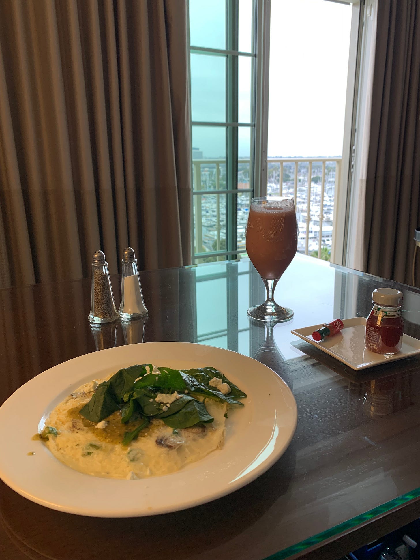 Room service breakfast at the Ritz Carlton, Marina del Rey.